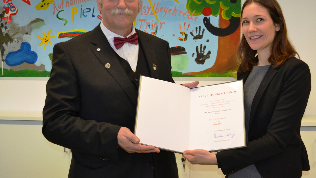 „Ansgar Helm-Becker ist ein Vollblut-Kommunalpolitiker. Für sein jahrzehntelanges kommunalpolitisches und ehrenamtliches Engagement danke ich ihm sehr. Dafür hat er die Auszeichnung mit der Ehrennadel des Landes Rheinland-Pfalz mehr als verdient“, sagte Ministerin Anne Spiegel in ihrer Laudatio.